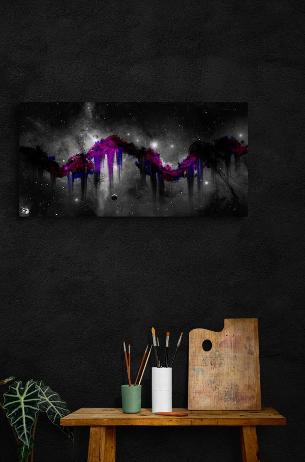 - Plongez dans l'univers fascinant de la saturation spatiale avec cette toile captivante, où chaque nuance de couleur et chaque élément se rejoignent en une harmonie saisissante.