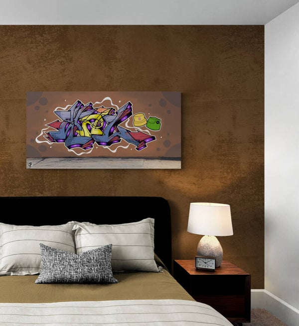 - Plongez dans l'univers vibrant du graffiti avec ce tableau unique, immortalisé sur la surface d'un mur, où chaque coup de spray raconte une histoire.